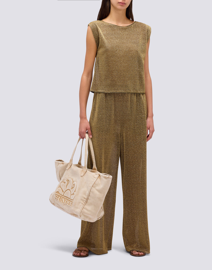 The women's lurex long pants are perfect for a sparkling look. With their shiny fabric, they will make you shine on every occasion. Add a touch of light to your wardrobe with these super chic pants.