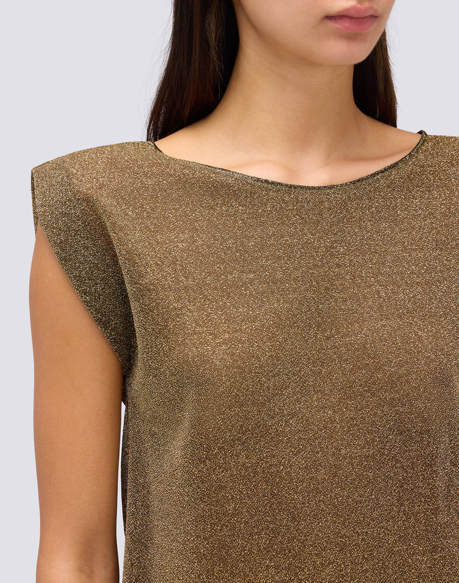 This women's lurex t-shirt is perfect for creating sparkling looks. Pair it with the matching shorts or trousers, it will add a touch of glamour to your style. Made from soft fabric, it is also comfortable to wear all day long.