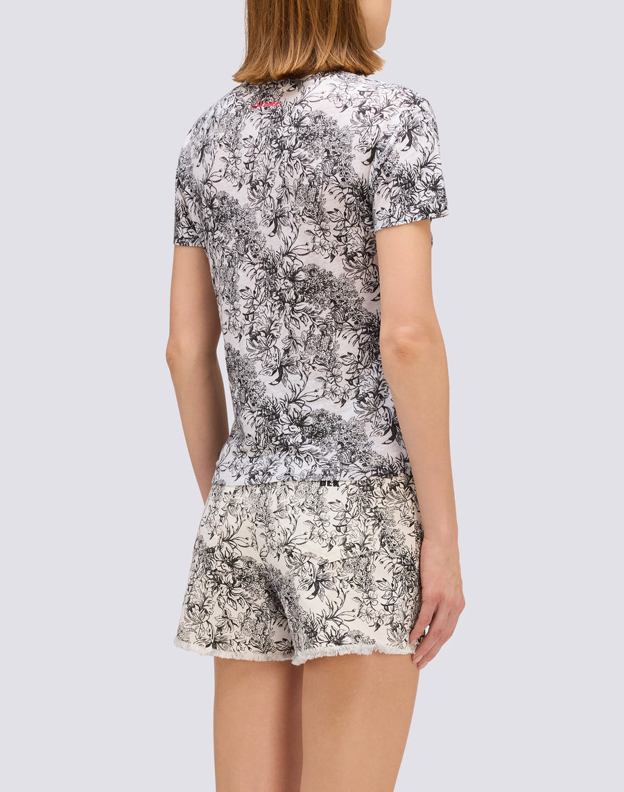 The Fleur De Joie women's summer t-shirt with short sleeves in linen with floral print is lightweight and perfect for summer. Made of soft linen, it guarantees a feeling of freshness and comfort during the hottest days. The floral print adds a touch of style to your summer outfit.
